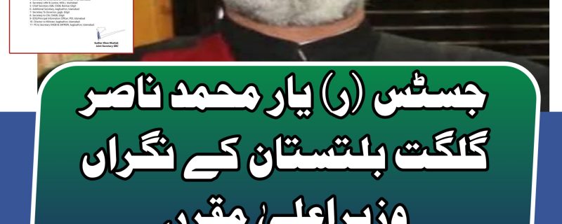 اسلام آباد: گلگت بلتستان چیف کورٹ کے سابق جج، جسٹس (ر) یار محمد ناصر کو گلگت بلتستان کا نگراں وزیراعلیٰ مقرر کر دیا گیا ہے۔